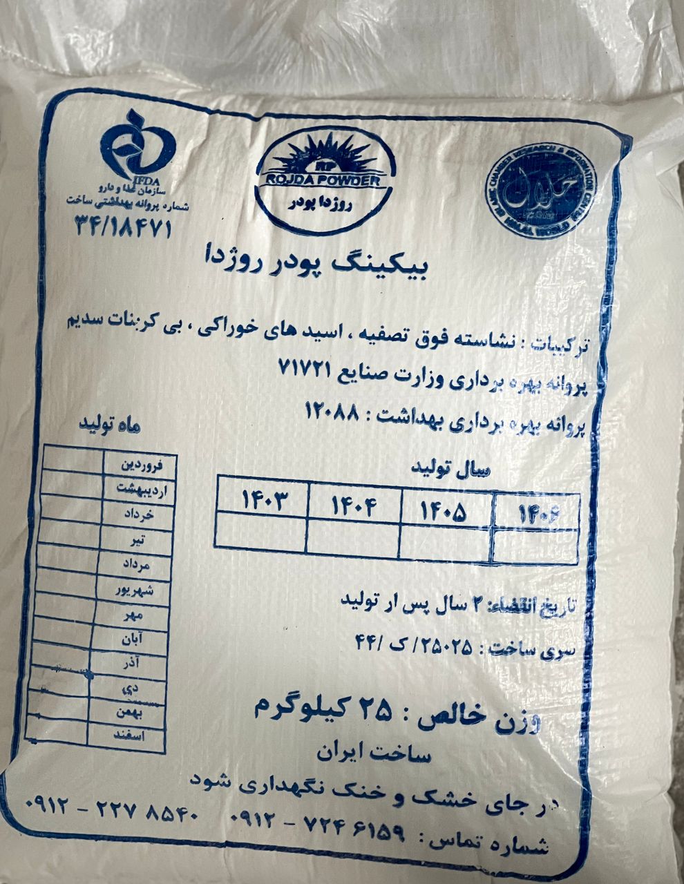 شرکت روژدا پودر تولید کننده بیکینگ پودر روژدا در بسته بندی های مختلف