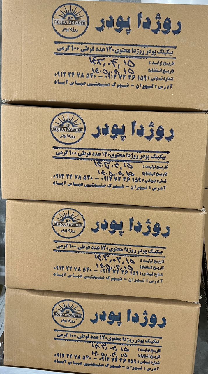 شرکت روژدا پودر تولید کننده بیکینگ پودر روژدا در بسته بندی های مختلف