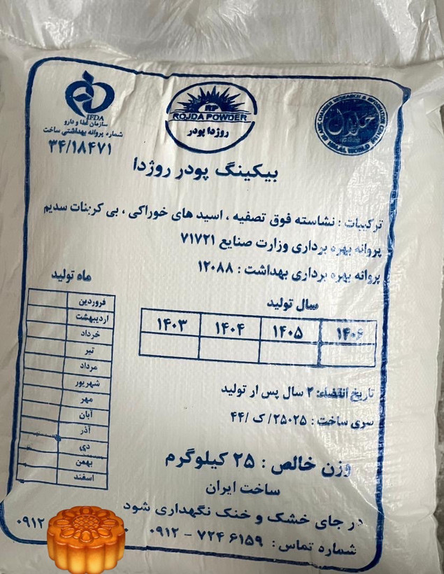 دستهبندی: بیکینگ پودر روژدا کیسه 25 کیلوگرمی